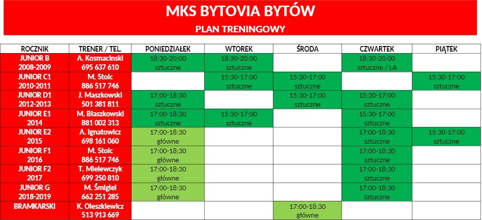 Przedstawiamy również Państwu grafik treningowy wszystkich grup. Do zobaczenia przy Mickiewicza 13.