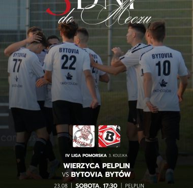 Czas na kolejną piłkarską bitwę! Wierzyca Pelplin vs Bytovia Bytów Walczymy o pełną pulę! Sobota – godzina 17:30 Stadion w Pelplinie. Razem tworzymy drużynę...