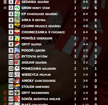 Tak prezentuje się tabela ligowa po kolejce nr 2! W obecnym tygodniu rozegramy mecz wyjazdowy:Sobota (23.08) Wierzyca Pelplin vs Bytovia BytówGodzina 17:00.Stadion w Pelplinie....